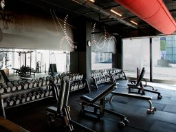 Das Herzstück unserer Praxis ist der ca. 100m² große Bewegungsraum. Hier findet ihr sowohl Kombigeräte für die KGG als auch viel Platz für Hanteltraining, Sprung- und Lauftraining und ähnliches!